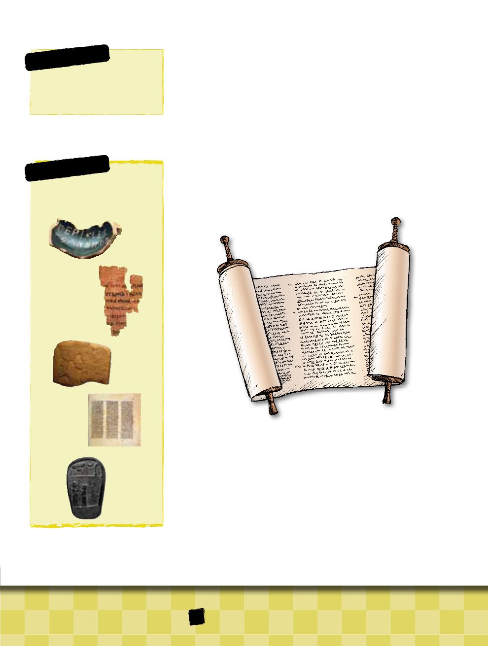 eru skrivað á papýrus, skinn ella pergament, og eru tey ymisk í longd