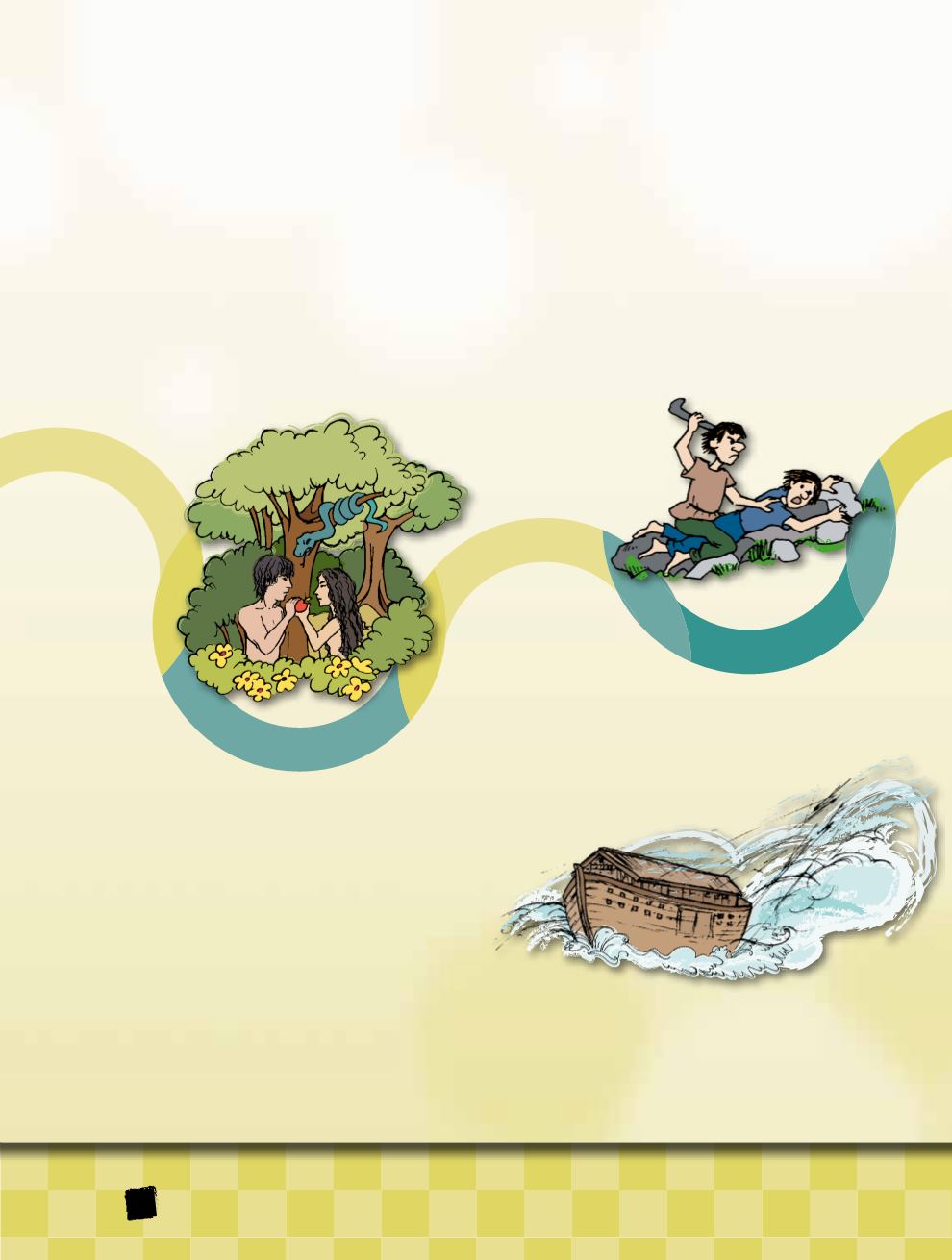 Søgurnar um skapanina, syndafallið, Káin og Ábel, Nóa ark og Bábelstornið eru at finna